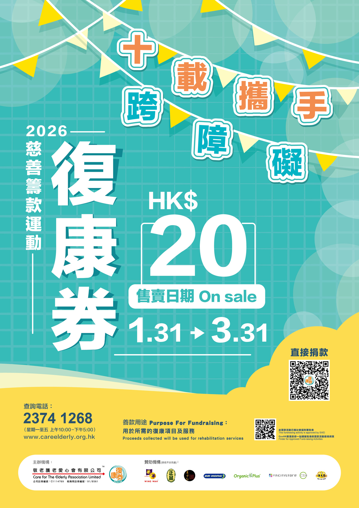 敬老護老愛心會於2017年首次舉辦「復康券」慈善籌款運動,以義賣慈善券的形式,向社會各界人士義賣每張定價港幣$20的「復康券」,為各種自助組織及復康服務機構籌募發展及營運經費。